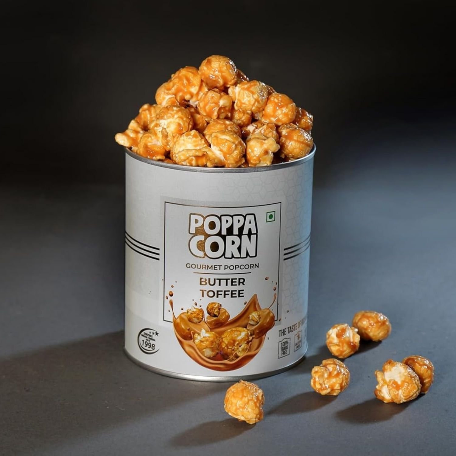 POPPACORN Gourmet Popcorn Gift Pack, Tin (560g, Brown 4 Pack)