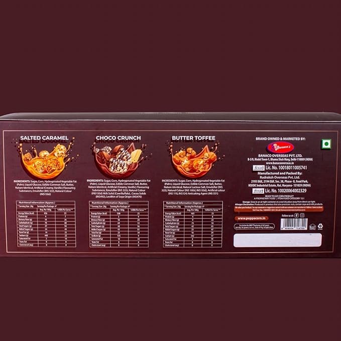 - Gourmet Popcorn Variety Pack: Indulge in a delectable assortment of 4 distinct flavours – Salted Caramel, Choco Crunch, Butter Toffee, and Nutty Choco Delight.